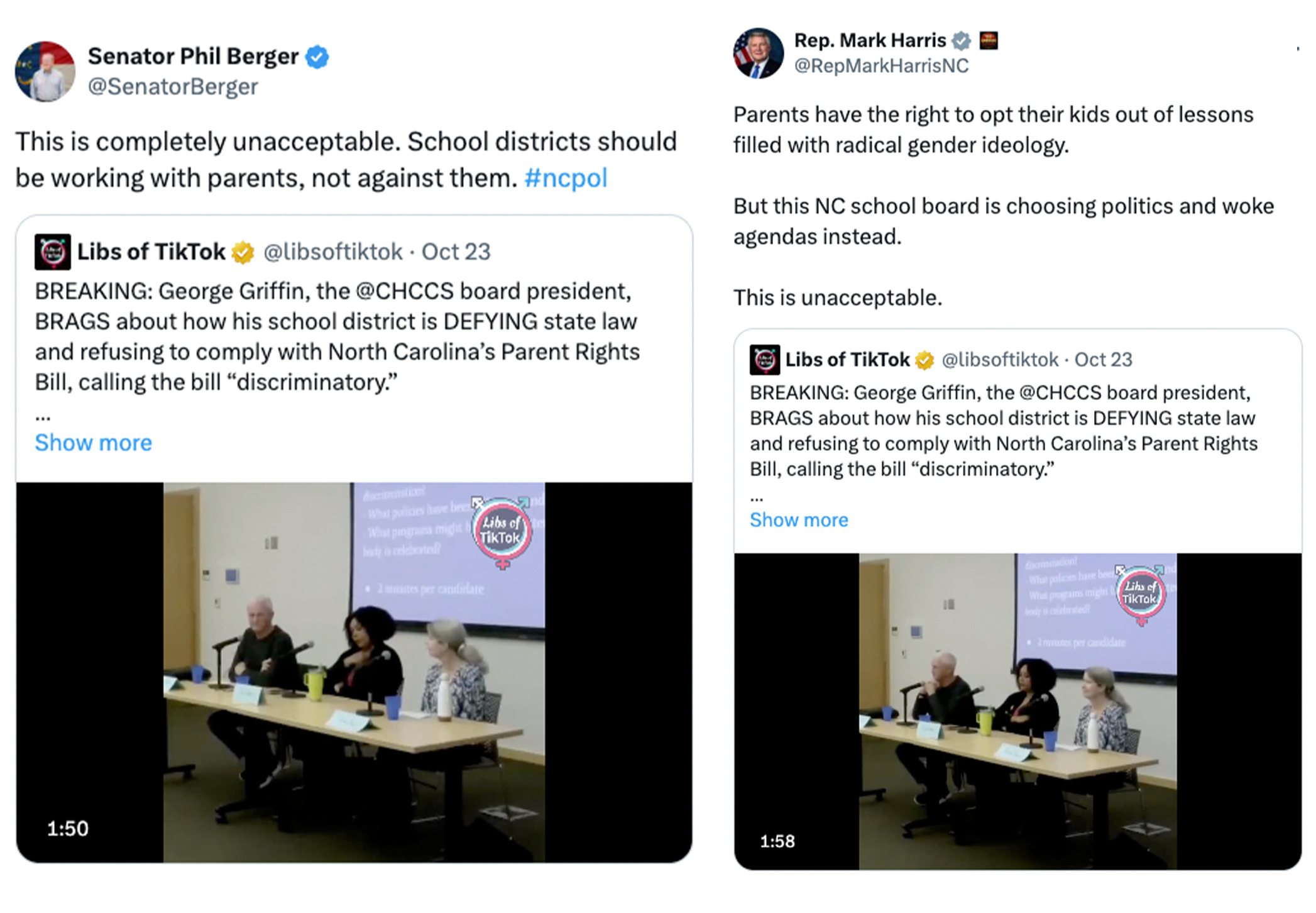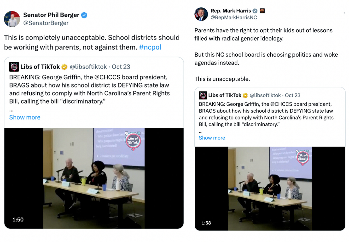 After our report went viral, North Carolina House Majority Leader Brenden Jones announced that he will have George Griffin, President of the CHCCS school board, testify before the North Carolina House for his blatant violation of State Law.