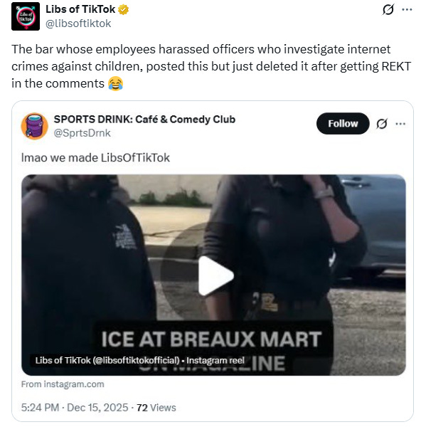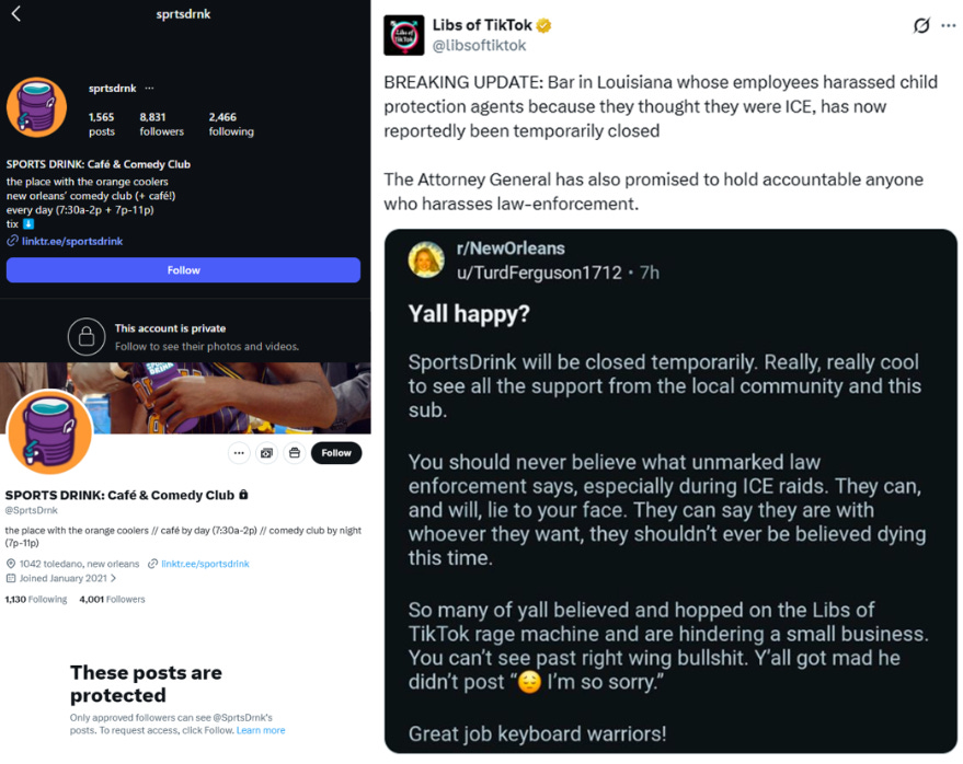 Earlier this week, we exposed SPORTS DRINK, a bar in New Orleans, after they posted a video of themselves online HARASSING two ICAC officers (Internet Crimes Against Children) because they thought they were ICE agents.