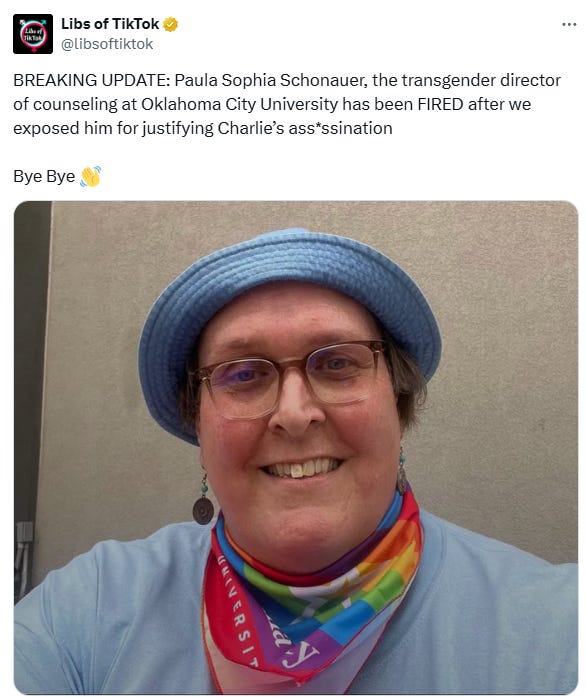The first story came after we reported on Paula Sophia Schonauer, a man pretending to be a woman, who worked as the Director of Counseling at Oklahoma City University.