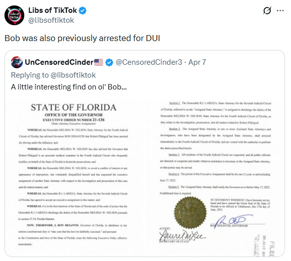 Robert Pfalzgraf, a medical examiner in Florida, made a post online wishing for the death of President Trump, stating, “I’m looking forward to the big beautiful obituary.”